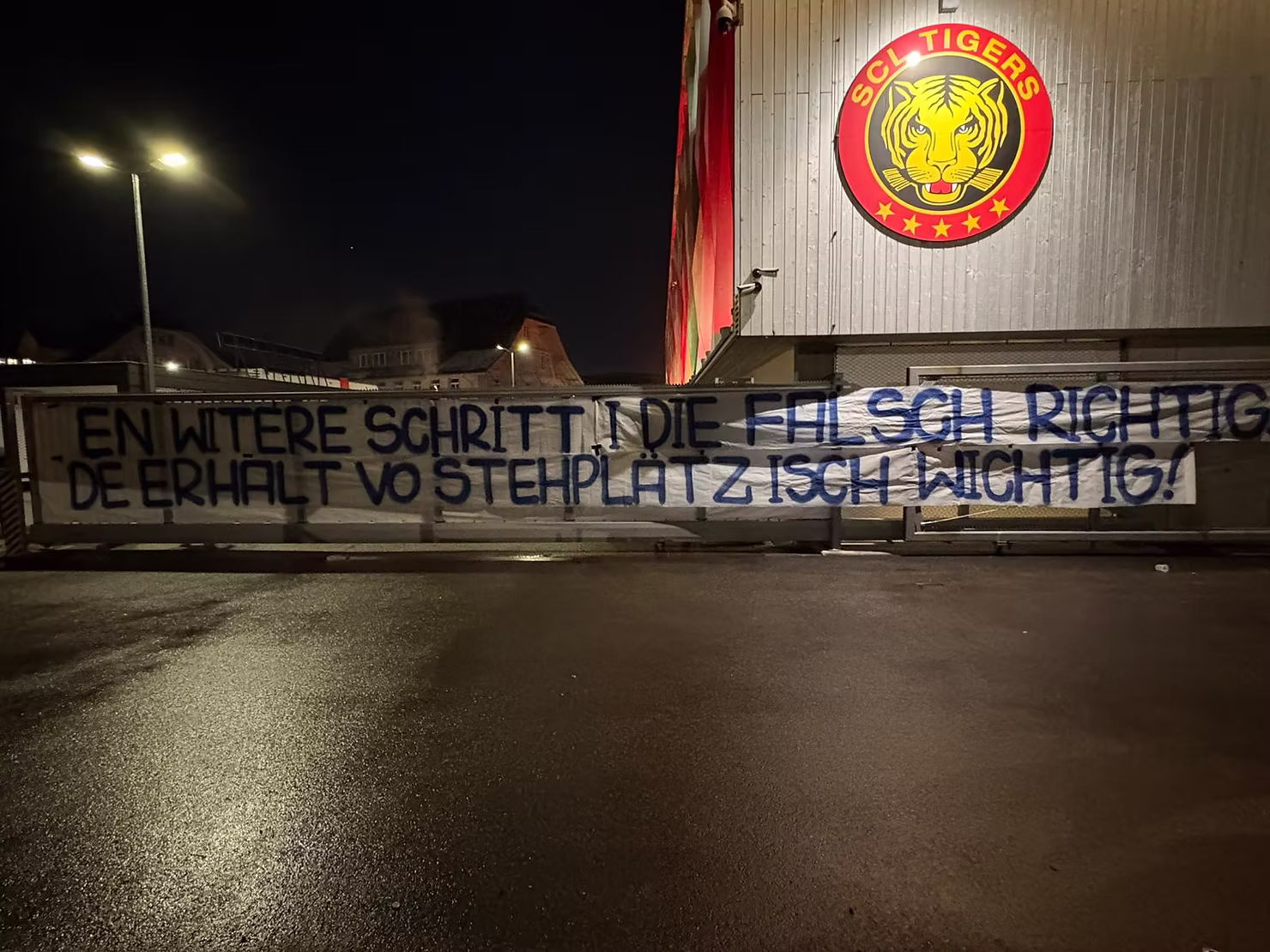 Wir verfolgten das Spiel anschliessend trotz Tickets von draussen per Beamer und reisten danach friedlich wieder ab. Der Sicherheitsdienst der Tigers liess uns gewähren und verhielt sich uns gegenüber durchgehend kooperativ und ruhig.